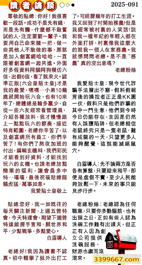 | 主题 :091期:彩民推荐〖貼信讀者論壇〗 |
