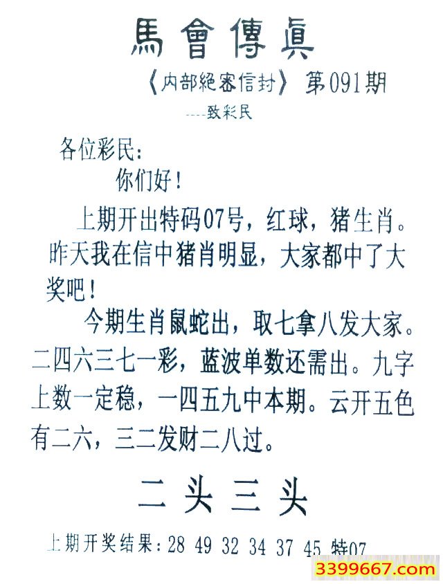 | 主题 :091期:首发推荐:≮馬會傳眞≯→(香港正版) |