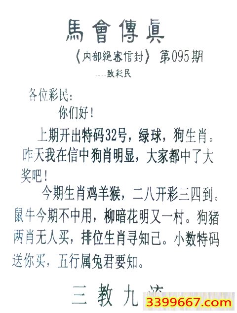 | 主题 :095期:首发推荐:≮馬會傳眞≯→(香港正版) |