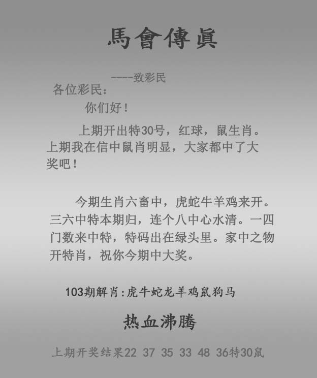 | 主题 :103期:正马会传真 |