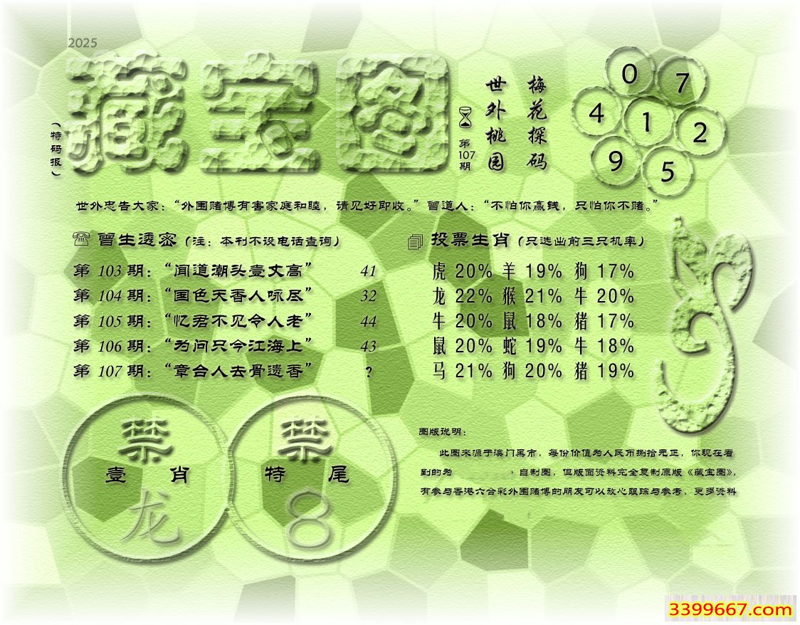 107期藏寶圖 新:面对参江背伍峰 老:章台人去骨遗香 禁:龙 禁:8尾
