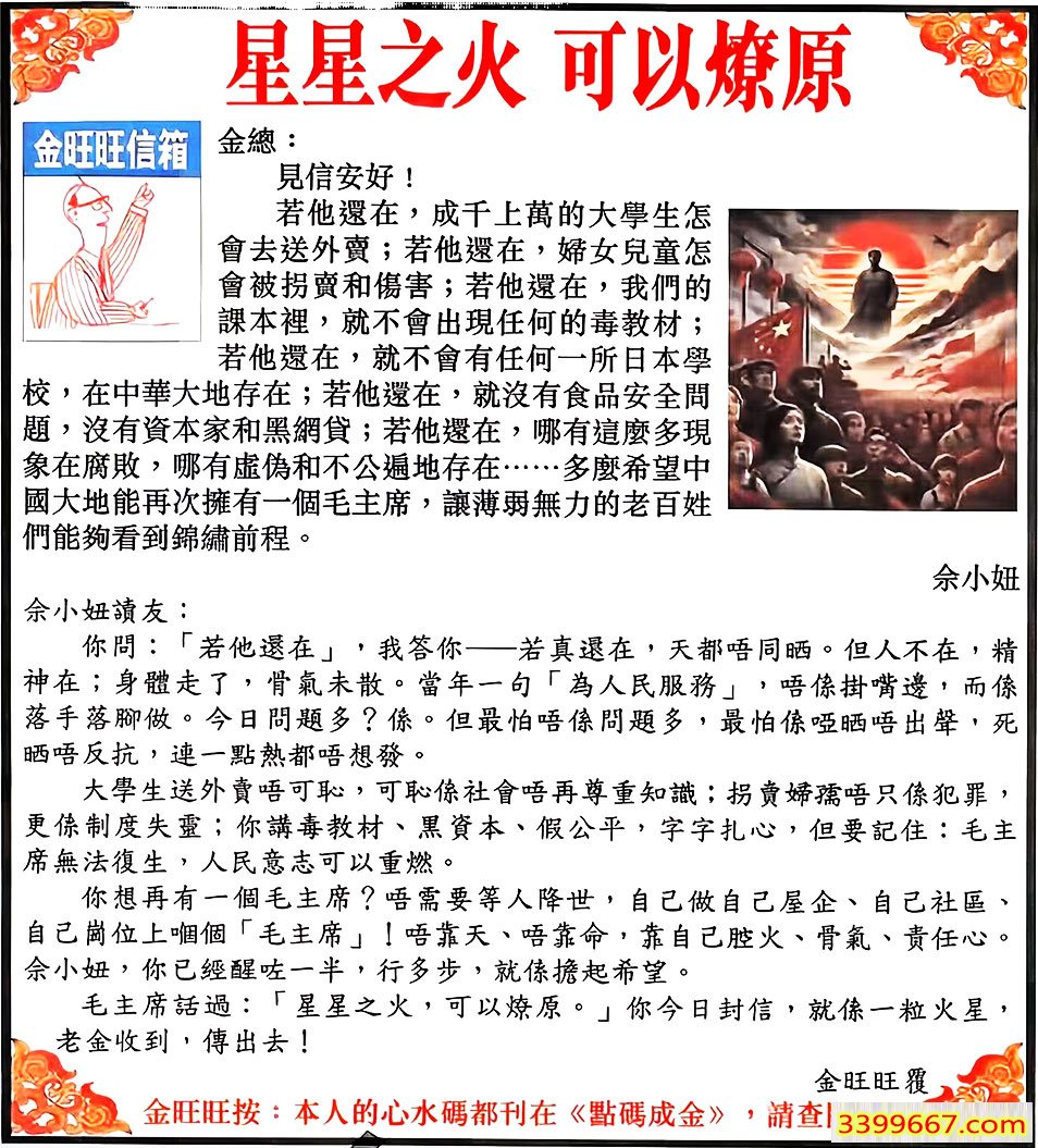 108期:金旺旺信箱彩民推荐→→《星星之火 可以燎原》