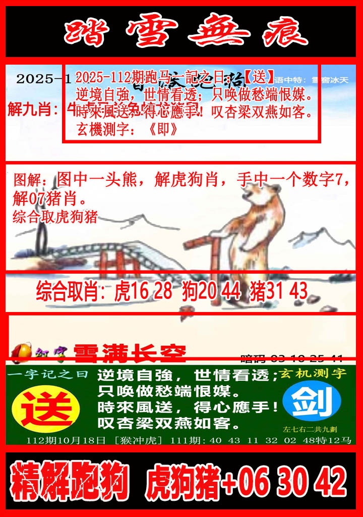 | 主题 :112期:【踏雪无痕】跑狗专解 |