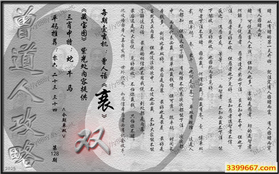 | 主题 :128期藏寶圖 新:作意叁年醉月华 老:前山急雨过溪来 禁:狗 禁:4尾 |